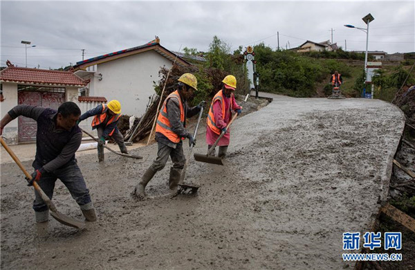 四川路橋公司的工人在金陽縣依達(dá)鄉(xiāng)保爾村對(duì)破損路面進(jìn)行整治(6月5日攝)。坐落在金沙江畔的四川省金陽縣是國家級(jí)深度貧困縣,境內(nèi)群山連綿起伏,海拔落差大,眾多村寨處于高山或者高半山上,道路施工難度大。近年來,當(dāng)?shù)卣畬⒔煌ㄗ鳛槊撠毠?jiān)的先導(dǎo)性工程,路越修越寬、越修越好,成為當(dāng)?shù)厝罕姷拿撠氈赂宦?。截?019年底,金陽縣實(shí)現(xiàn)所有鄉(xiāng)鎮(zhèn)通油路、建制村通硬化路,鄉(xiāng)道里程達(dá)329.9公里,村道里程達(dá)866.8公里。新華社記者江宏景攝
