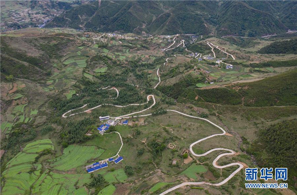 金陽縣天地壩鎮(zhèn)通往吉史里口村易地扶貧搬遷集中安置點(diǎn)的道路(6月7日攝,無人機(jī)照片)。坐落在金沙江畔的四川省金陽縣是國家級(jí)深度貧困縣,境內(nèi)群山連綿起伏,海拔落差大,眾多村寨處于高山或者高半山上,道路施工難度大。近年來,當(dāng)?shù)卣畬⒔煌ㄗ鳛槊撠毠?jiān)的先導(dǎo)性工程,路越修越寬、越修越好,成為當(dāng)?shù)厝罕姷拿撠氈赂宦?。截?019年底,金陽縣實(shí)現(xiàn)所有鄉(xiāng)鎮(zhèn)通油路、建制村通硬化路,鄉(xiāng)道里程達(dá)329.9公里,村道里程達(dá)866.8公里。新華社記者江宏景攝