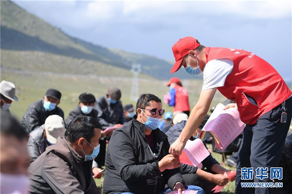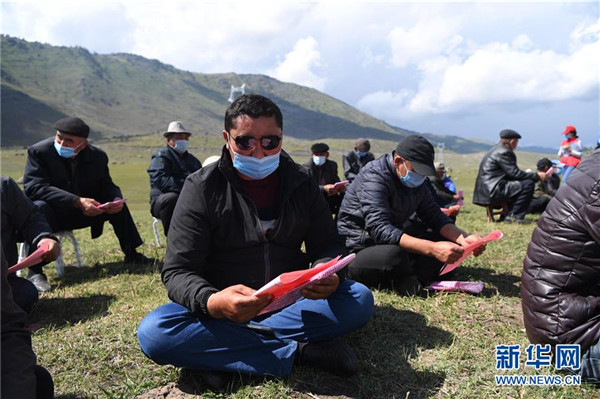6月20日,在布爾津縣阿貢蓋提草原,牧民在看布爾津縣也格孜托別鄉(xiāng)克孜勒托蓋村家庭醫(yī)生簽約團(tuán)隊(duì)發(fā)放的宣傳材料。圍繞實(shí)現(xiàn)人人享有基本醫(yī)療衛(wèi)生服務(wù)目標(biāo),2016年起,新疆布爾津縣開(kāi)展家庭醫(yī)生簽約服務(wù)工作。該縣組建家庭醫(yī)生簽約團(tuán)隊(duì)65個(gè),團(tuán)隊(duì)醫(yī)務(wù)人員233名,通過(guò)手機(jī)APP、基本公衛(wèi)系統(tǒng)與全縣建檔立卡貧困戶進(jìn)行電子化簽約,提升村醫(yī)隨訪的工作效率和質(zhì)量。截至目前,已完成簽約42936人,履約40043人。新華社記者沙達(dá)提攝