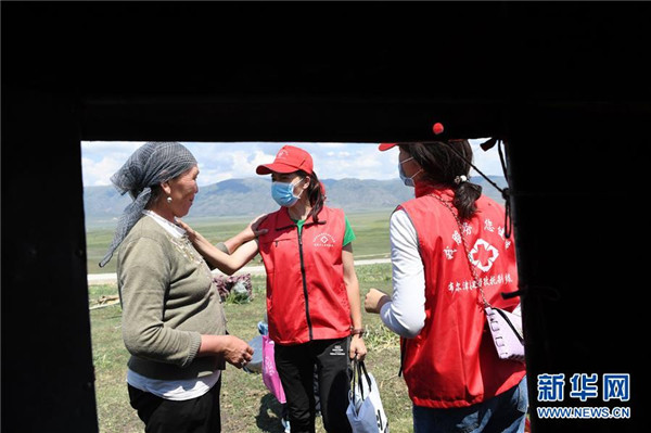 6月20日,新疆阿勒泰地區(qū)布爾津縣也格孜托別鄉(xiāng)克孜勒托蓋村村醫(yī)來(lái)到布爾津縣黑流灘草原給牧民巴合提古麗·塔拉甫汗檢查身體。圍繞實(shí)現(xiàn)人人享有基本醫(yī)療衛(wèi)生服務(wù)目標(biāo),2016年起,新疆布爾津縣開(kāi)展家庭醫(yī)生簽約服務(wù)工作。該縣組建家庭醫(yī)生簽約團(tuán)隊(duì)65個(gè),團(tuán)隊(duì)醫(yī)務(wù)人員233名,通過(guò)手機(jī)APP、基本公衛(wèi)系統(tǒng)與全縣建檔立卡貧困戶進(jìn)行電子化簽約,提升村醫(yī)隨訪的工作效率和質(zhì)量。截至目前,已完成簽約42936人,履約40043人。新華社記者沙達(dá)提攝