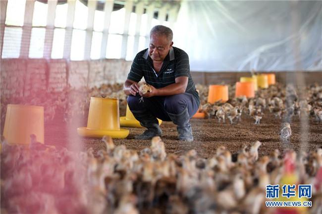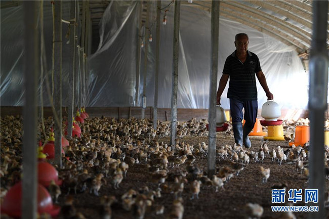 家住安徽省肥西縣花崗鎮(zhèn)楊灣村的黃榮春多年前外出打工時意外受傷,妻子患病失去勞動能力。2014年,黃榮春一家被確定為建檔立卡貧困戶。雖然身體不太好,但是黃榮春頭腦靈活、吃苦能干。在扶貧干部的幫扶下,黃榮春申請到5萬元貼息貸款,發(fā)展白鵝、土雞等家禽養(yǎng)殖。從幾百只到幾萬只,從單一養(yǎng)殖到多元化養(yǎng)殖,他的家禽養(yǎng)殖業(yè)越做越大,2019年,黃榮春靠養(yǎng)雞賺了4萬元。如今,黃榮春已經(jīng)脫貧,成了當(dāng)?shù)赜忻酿B(yǎng)殖能手,并帶動村里有勞動能力的貧困戶發(fā)展特色養(yǎng)殖。
