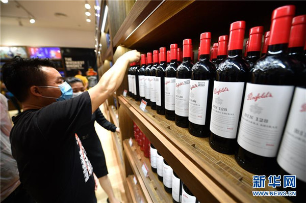 7月1日,顧客在??谌赵聫V場免稅店選購酒類商品。當日,海南開始實施調(diào)整后的離島免稅購物政策。海南離島旅客每年每人免稅購物額度提高至10萬元,電子消費產(chǎn)品等7類新增商品開售。新華社記者郭程攝