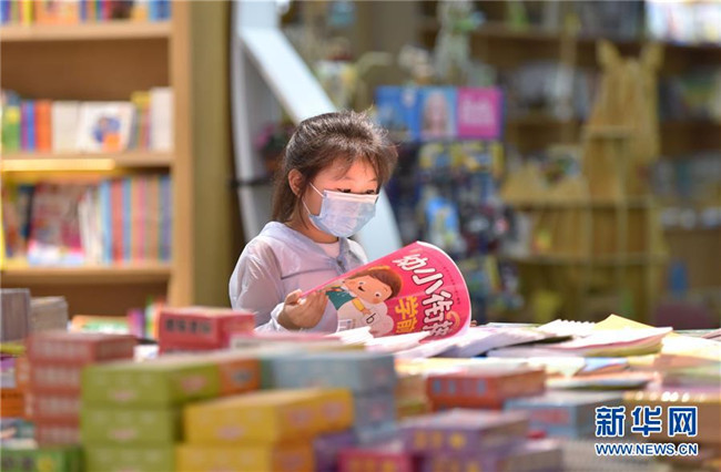 7月5日,一名小朋友在河北省定州市新華書店挑選圖書。新華社記者 朱旭東 攝