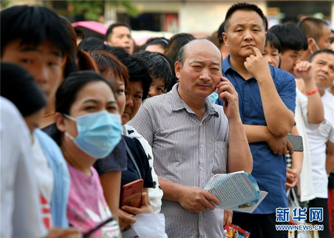 7月8日,在河南省寶豐縣第一高級中學考點,家長在考場外等候考生。 當日,全國部分地區(qū)2020年高考結(jié)束。 新華社記者 李嘉南 攝