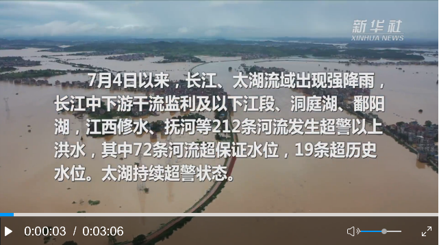 汛情嚴(yán)峻 長江流域遭受嚴(yán)重洪澇災(zāi)害