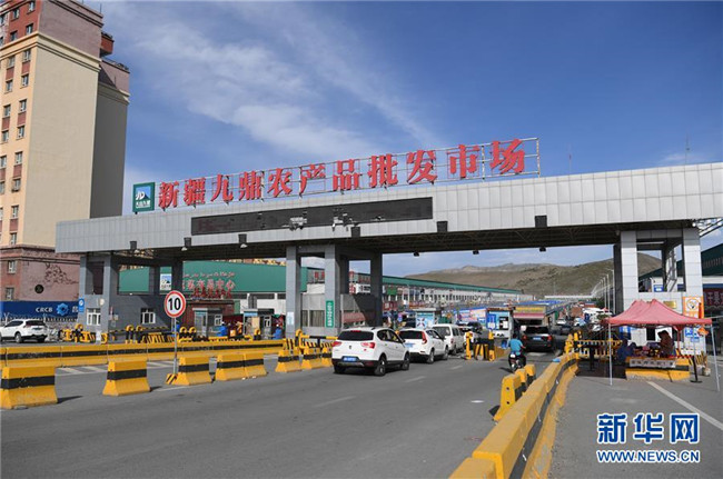 7月18日,在烏魯木齊市沙依巴克區(qū)新疆九鼎農(nóng)產(chǎn)品批發(fā)市場,車輛人員登記進入市場。 新華社記者 宋彥樺 攝