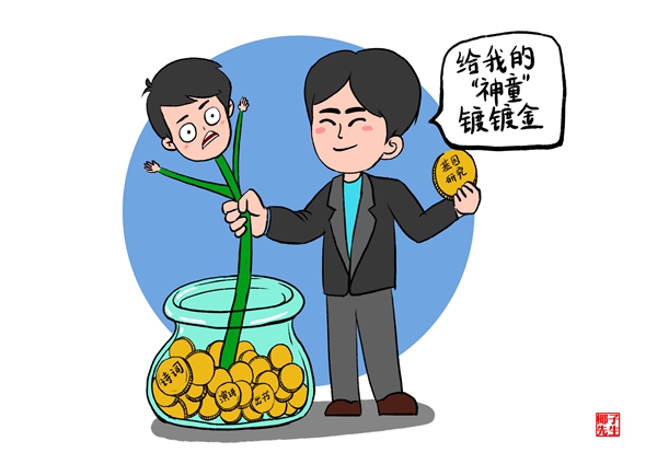 如此“鍍金”是害了孩子。學習是一場馬拉松,投機取巧和急功近利違背兒童成長規(guī)律,名不副實的光環(huán)終究會給孩子帶來負擔,甚至誤導孩子一生。父母之愛子,則為之計深遠。想讓這份愛有個正確的打開方式,就請多傾聽孩子的心聲,更加關注他們的身體素質、道德情操、交往能力、自理能力,多一份平常心和實事求是,讓孩子能夠自由健康成長!(文字:董璐 手繪:趙凱)