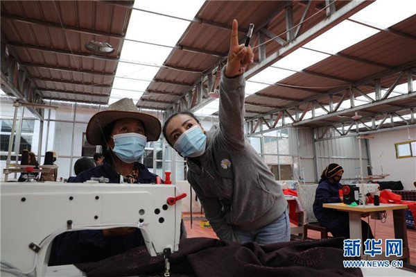 7月23日,在甘肅省甘南藏族自治州夏河縣??奇?zhèn)崗岔村的扶貧車間內(nèi),卓瑪吉(左二)了解成衣加工情況。崗岔村是甘肅省甘南藏族自治州夏河縣??奇?zhèn)的一個牧業(yè)村,平均海拔3000米以上。2018年,在夏河縣文明辦工作的卓瑪吉開始擔(dān)任駐村幫扶工作隊(duì)隊(duì)長,每年都有200多天待在草原上。兩年來,卓瑪吉帶領(lǐng)大家開辦扶貧車間,發(fā)展特色產(chǎn)業(yè),聯(lián)系勞務(wù)輸出。為了讓村民更全面地了解精準(zhǔn)扶貧政策,卓瑪吉登門宣講政策。為了提高村容村貌,卓瑪吉發(fā)動大家開展廁所革命和庭院環(huán)境評比,積極響應(yīng)甘南藏族自治州“全域無垃圾”創(chuàng)建行動。她還從縣城請來醫(yī)生,為村民舉辦健康講座,在全村婦女中開展“兩癌篩查”。如今,崗岔村變成了干凈、整齊、富裕、美麗的生態(tài)文明村,提前實(shí)現(xiàn)了整村脫貧。談起心愿,卓瑪吉說:“要讓草原和草原上的人都變得更美。”新華社發(fā)(杜哲宇攝)