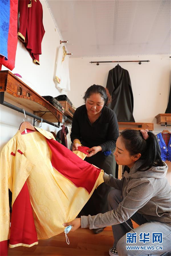 7月23日,在甘肅省甘南藏族自治州夏河縣??奇?zhèn)崗岔村的扶貧車間內(nèi),卓瑪吉(右)和扶貧車間負(fù)責(zé)人研究成衣款式。崗岔村是甘肅省甘南藏族自治州夏河縣??奇?zhèn)的一個牧業(yè)村,平均海拔3000米以上。2018年,在夏河縣文明辦工作的卓瑪吉開始擔(dān)任駐村幫扶工作隊(duì)隊(duì)長,每年都有200多天待在草原上。兩年來,卓瑪吉帶領(lǐng)大家開辦扶貧車間,發(fā)展特色產(chǎn)業(yè),聯(lián)系勞務(wù)輸出。為了讓村民更全面地了解精準(zhǔn)扶貧政策,卓瑪吉登門宣講政策。為了提高村容村貌,卓瑪吉發(fā)動大家開展廁所革命和庭院環(huán)境評比,積極響應(yīng)甘南藏族自治州“全域無垃圾”創(chuàng)建行動。她還從縣城請來醫(yī)生,為村民舉辦健康講座,在全村婦女中開展“兩癌篩查”。如今,崗岔村變成了干凈、整齊、富裕、美麗的生態(tài)文明村,提前實(shí)現(xiàn)了整村脫貧。談起心愿,卓瑪吉說:“要讓草原和草原上的人都變得更美。”新華社發(fā)(杜哲宇攝)
