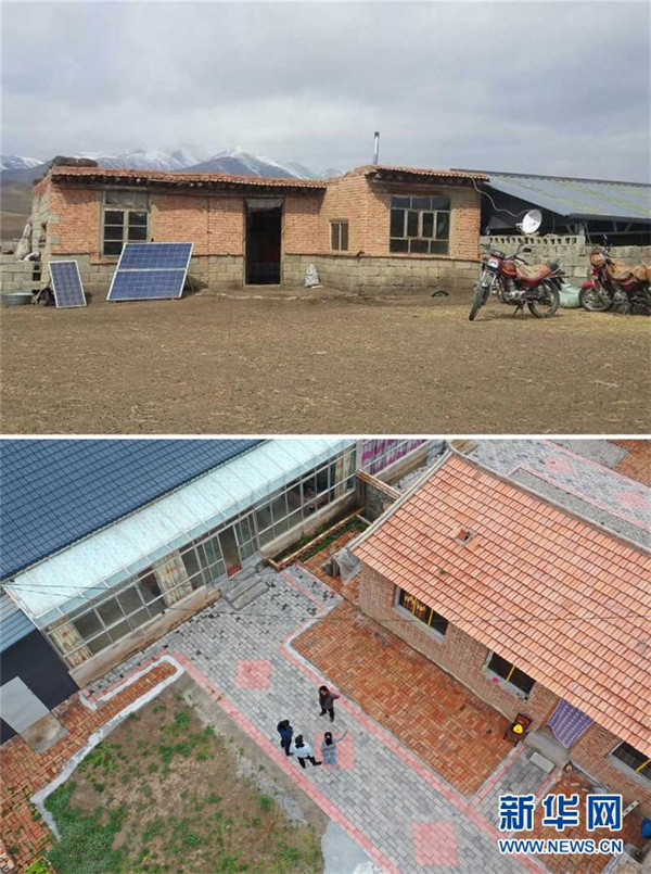 拼版照片:上圖為崗岔村村民才讓扎西在易地扶貧搬遷之前居住的房子(資料照片)。下圖為才讓扎西易地扶貧搬遷后的新家(7月23日攝,無人機(jī)照片)。新華社發(fā)(杜哲宇攝)崗岔村是甘肅省甘南藏族自治州夏河縣??奇?zhèn)的一個牧業(yè)村,平均海拔3000米以上。2018年,在夏河縣文明辦工作的卓瑪吉開始擔(dān)任駐村幫扶工作隊(duì)隊(duì)長,每年都有200多天待在草原上。兩年來,卓瑪吉帶領(lǐng)大家開辦扶貧車間,發(fā)展特色產(chǎn)業(yè),聯(lián)系勞務(wù)輸出。為了讓村民更全面地了解精準(zhǔn)扶貧政策,卓瑪吉登門宣講政策。為了提高村容村貌,卓瑪吉發(fā)動大家開展廁所革命和庭院環(huán)境評比,積極響應(yīng)甘南藏族自治州“全域無垃圾”創(chuàng)建行動。她還從縣城請來醫(yī)生,為村民舉辦健康講座,在全村婦女中開展“兩癌篩查”。如今,崗岔村變成了干凈、整齊、富裕、美麗的生態(tài)文明村,提前實(shí)現(xiàn)了整村脫貧。談起心愿,卓瑪吉說:“要讓草原和草原上的人都變得更美。”新華社發(fā)