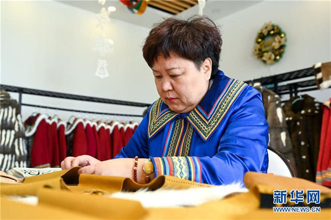 這是2019年12月16日拍攝的位于內蒙古自治區(qū)呼倫貝爾市鄂溫克族自治旗民族文化產業(yè)創(chuàng)業(yè)園的太陽姑娘工作室。 新華社記者 貝赫 攝