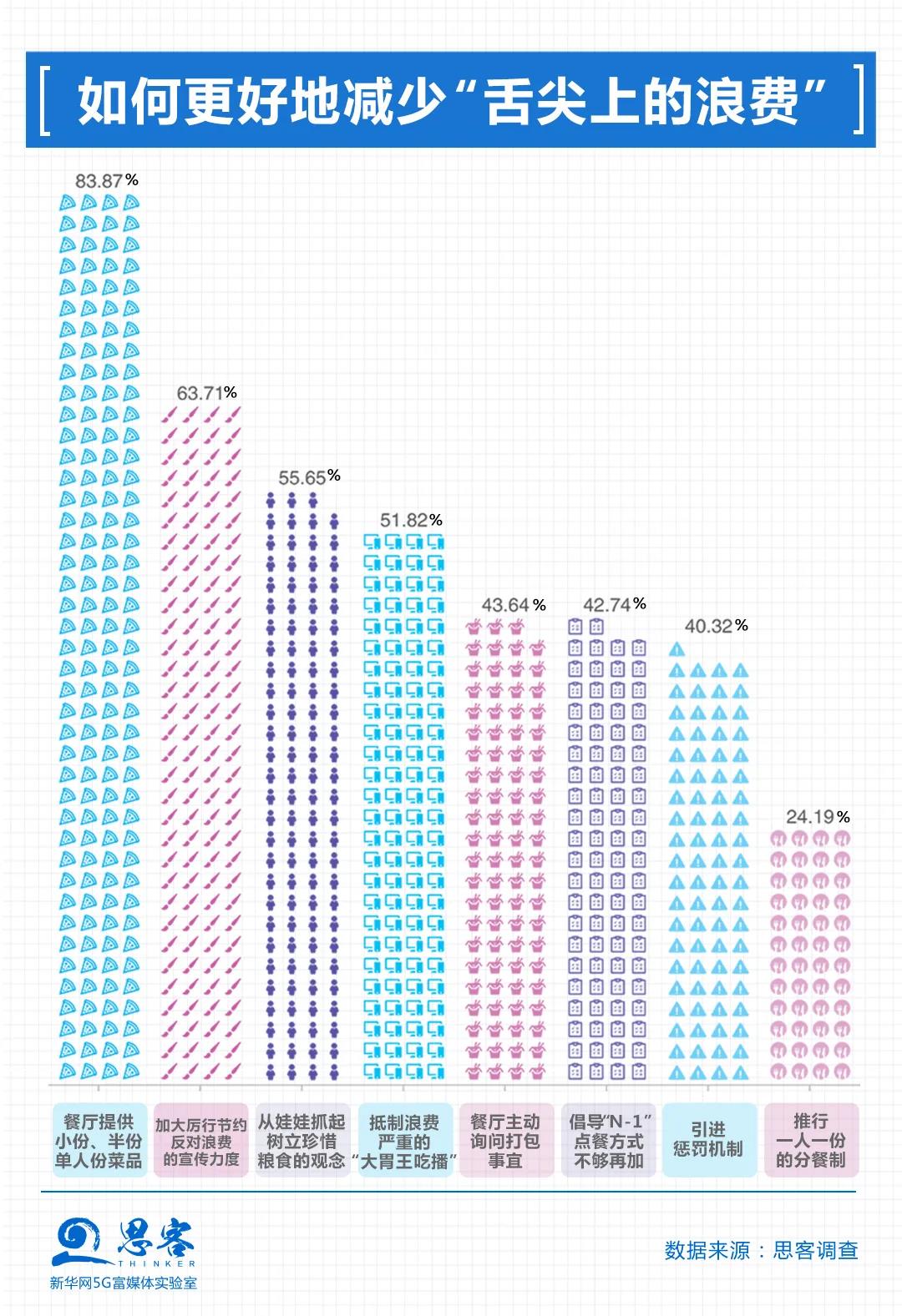 在這些治理浪費現(xiàn)象的措施中,餐廳提供小份、半份、單人份的菜品得到了83.87%的受訪者的歡迎。這項措施也在不少餐飲企業(yè)、餐廳食堂等得到落實,在某外賣平臺上,已有超60萬商戶上線小份餐。有網(wǎng)民說,小份菜不僅可以讓我多吃幾道菜,豐富我的餐桌,還能控制點餐的量,避免浪費。