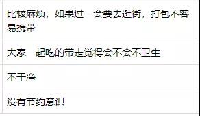 打包不合適、太麻煩、沒面子,這些是受訪者認為在外就餐不愿打包剩菜的主要原因。“我不是宴會的主辦者,我打包不合適,好像我占便宜似的”“同桌的人一起夾過的菜,打包不衛(wèi)生”“穿著西裝打著領帶,手上拿著打包盒很奇怪”“中午食堂的剩菜又沒有打包盒裝,下午又沒地方放,沒人會打包帶走”,這樣的受訪者留言在后臺還有不少。