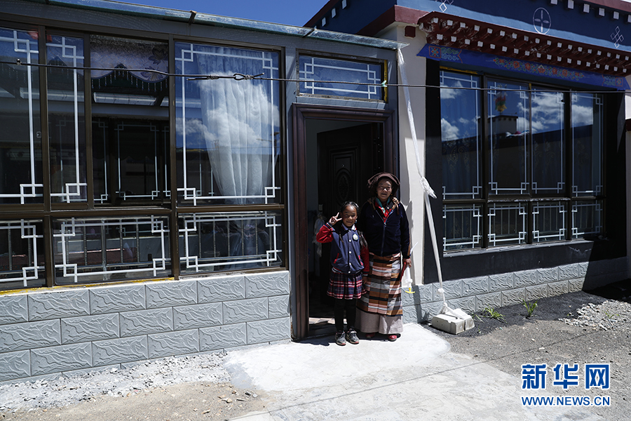 白瑪和她的媽媽在家門口合影。新華網(wǎng)記者焦鵬 攝