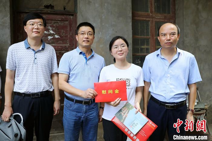 湖南大學為欲帶奶奶上學的江西女孩送去錄取通知書。 蔣鼎邦 攝