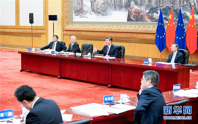 習近平強調(diào),中歐互為重要貿(mào)易和投資伙伴。雙方應加強宏觀政策協(xié)調(diào),拿出更多舉措,釋放更多合作機遇。今天雙方正式簽署了《中歐地理標志協(xié)定》。雙方要本著積極務實的態(tài)度,加快中歐投資協(xié)定談判,實現(xiàn)年內(nèi)完成談判的目標,推動合作提質(zhì)升級,助力疫情后世界經(jīng)濟復蘇,共同維護開放的貿(mào)易和投資環(huán)境。中國市場保持對歐開放,歡迎更多優(yōu)質(zhì)安全的歐盟農(nóng)產(chǎn)品進入中國。要打造中歐綠色合作伙伴,建設(shè)性參與全球應對氣候變化和保護全球生物多樣性多邊進程,相互支持對方明年辦好聯(lián)合國氣候變化格拉斯哥大會和《生物多樣性公約》第十五次締約方昆明大會取得積極成果,為推動全球可持續(xù)發(fā)展作出貢獻。要打造中歐數(shù)字合作伙伴。中方提出了《全球數(shù)據(jù)安全倡議》,希望歐方同中方一道,推動制定全球數(shù)字領(lǐng)域標準和規(guī)則,促進全球數(shù)字經(jīng)濟治理良性發(fā)展。要妥善解決彼此合理關(guān)切。中方密切關(guān)注近來歐方在5G、外資審查、政府采購、競爭政策等方面的一些動向,希望歐方保持貿(mào)易和投資市場開放,塑造開放、公平、公正、非歧視的營商環(huán)境,保障中國企業(yè)合法權(quán)益。