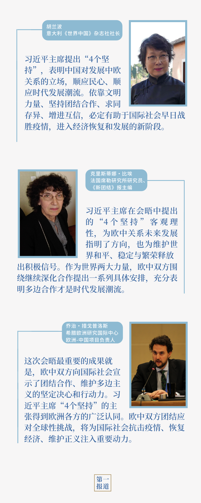 習(xí)主席關(guān)于中歐關(guān)系的這些重要論述,意涵深刻。“4個(gè)堅(jiān)持”,為下階段中歐關(guān)系發(fā)展指明方向,也體現(xiàn)中國深化中歐全面戰(zhàn)略伙伴關(guān)系的誠意擔(dān)當(dāng)。