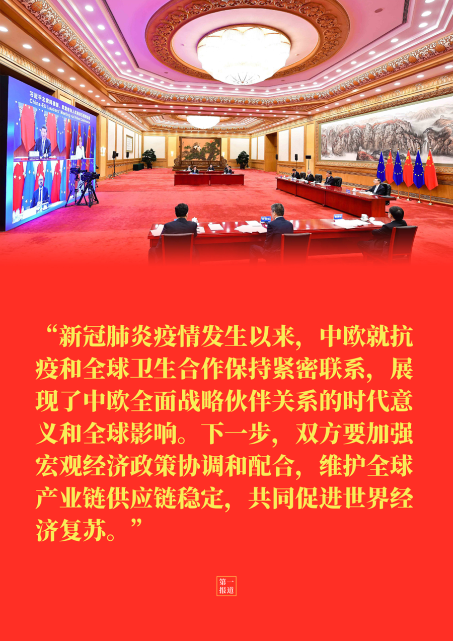 下一步,中歐合作如何推進(jìn)?習(xí)主席指明重點(diǎn)領(lǐng)域:加強(qiáng)宏觀經(jīng)濟(jì)政策協(xié)調(diào)和配合,加強(qiáng)疫苗研發(fā)合作,有序恢復(fù)人員往來、為貨物跨境流動(dòng)提供便利,積極開展對(duì)非三方合作。
