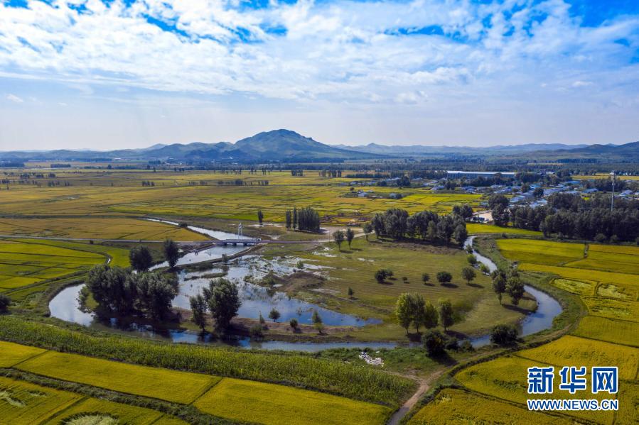 內蒙古烏蘭浩特市三合村的稻田(9月5日攝)?!⌒氯A社發(fā)(畢力格 攝)
