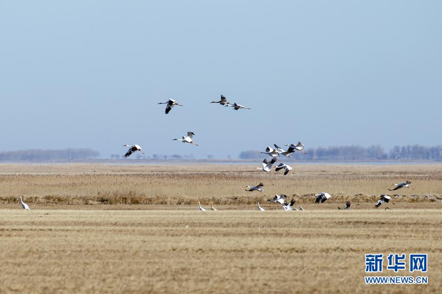 在內蒙古扎賚特旗圖牧吉國家級自然保護區(qū)拍攝的白鶴(11月6日攝)。 新華社發(fā)(畢力格 攝)