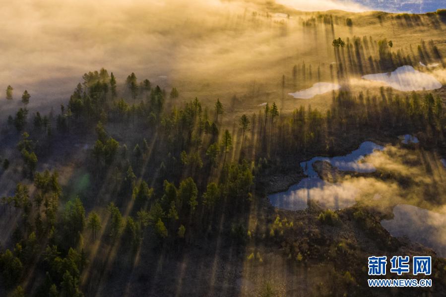 內蒙古阿爾山市杜鵑湖畔霧氣繚繞(5月28日攝)。 新華社發(fā)(畢力格 攝)