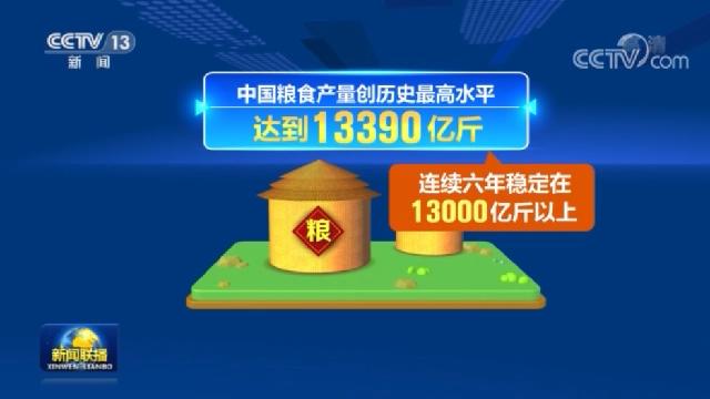 2020年,面對新冠肺炎疫情和不利天氣影響,中國糧食產(chǎn)量創(chuàng)歷史最高水平,達到13390億斤,連續(xù)六年穩(wěn)定在13000億斤以上。