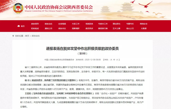 中央政協(xié)工作會議召開一年多來,陜西全省各級政協(xié)組織認真貫徹落實會議精神,堅持建言資政和凝聚共識雙向發(fā)力,推動政協(xié)工作提質(zhì)增效,形成了許多新的經(jīng)驗和成果,涌現(xiàn)出了一批先進基層政協(xié)組織。2020年11月2日,省政協(xié)十二屆四十七次主席會議決定通報表揚貫徹落實中央政協(xié)工作會議精神先進基層政協(xié)組織,金臺區(qū)政協(xié)、富平縣政協(xié)、富縣政協(xié)和柞水縣政協(xié)4家縣(區(qū))政協(xié)組織榜上有名。