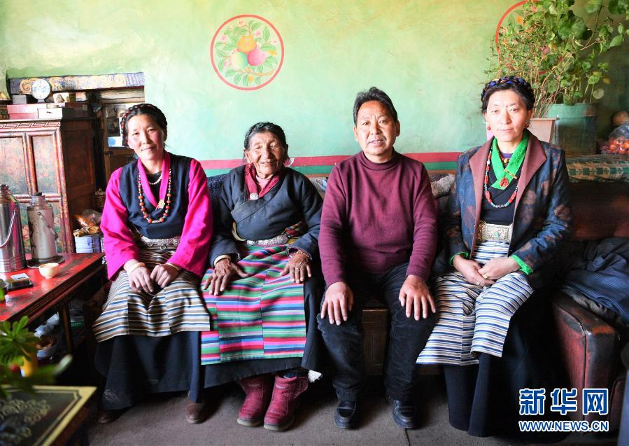 巴桑(左二)和家人合影(2月27日攝)。新華社記者 孫非 攝