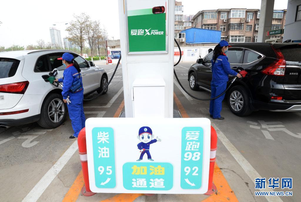 3月31日,在江蘇省連云港市連云區(qū)一加油站,工作人員給車輛加油。新華社發(fā)(王春 攝)
