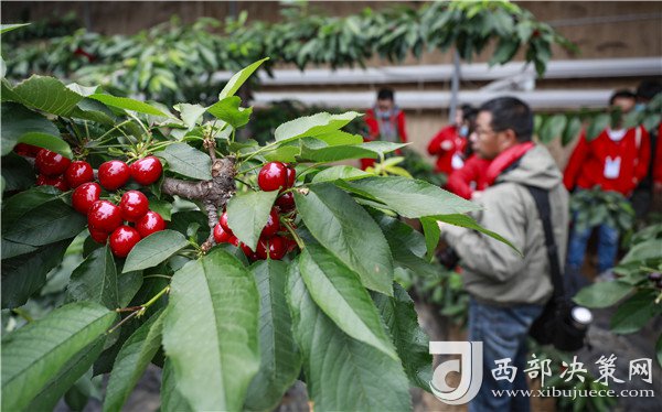 在櫻桃棚內(nèi),紅色的櫻桃一簇一簇簇?fù)碓跇渖希诰G油油的樹葉間顯得嬌艷欲滴。路寶告訴記者,子長的櫻桃可以趕在其他產(chǎn)地的櫻桃未上市前售賣,因此市場行情好,加上保存期長,適合現(xiàn)代物流的發(fā)展,從而產(chǎn)生了比較好的收益。“我們這個櫻桃可以在其他櫻桃還沒有上市的時候,借助現(xiàn)代物流賣到全國各地,甚至可以賣到櫻桃的主產(chǎn)區(qū)去。”