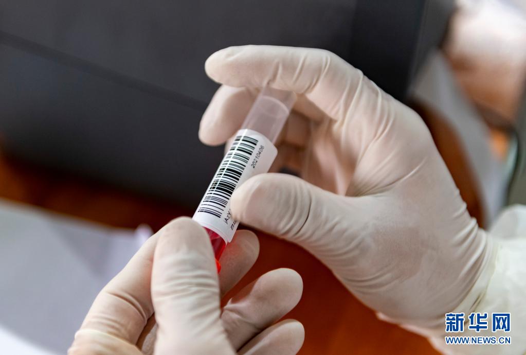 4月6日,在瑞麗市目瑙社區(qū)一核酸檢測點,醫(yī)務(wù)人員為核酸采樣管貼上標簽。新華社記者 陳欣波 攝