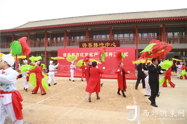 開園儀式上,彩旗飄揚,鑼鼓喧天。上午10時30分,佳縣縣委書記劉生勝隆重宣布:“東方紅文化產(chǎn)業(yè)園正式開園,歷時建設(shè)多年的東方紅文化產(chǎn)業(yè)園正式啟動,標志著佳縣紅色文化旅游發(fā)展邁上了新臺階。”