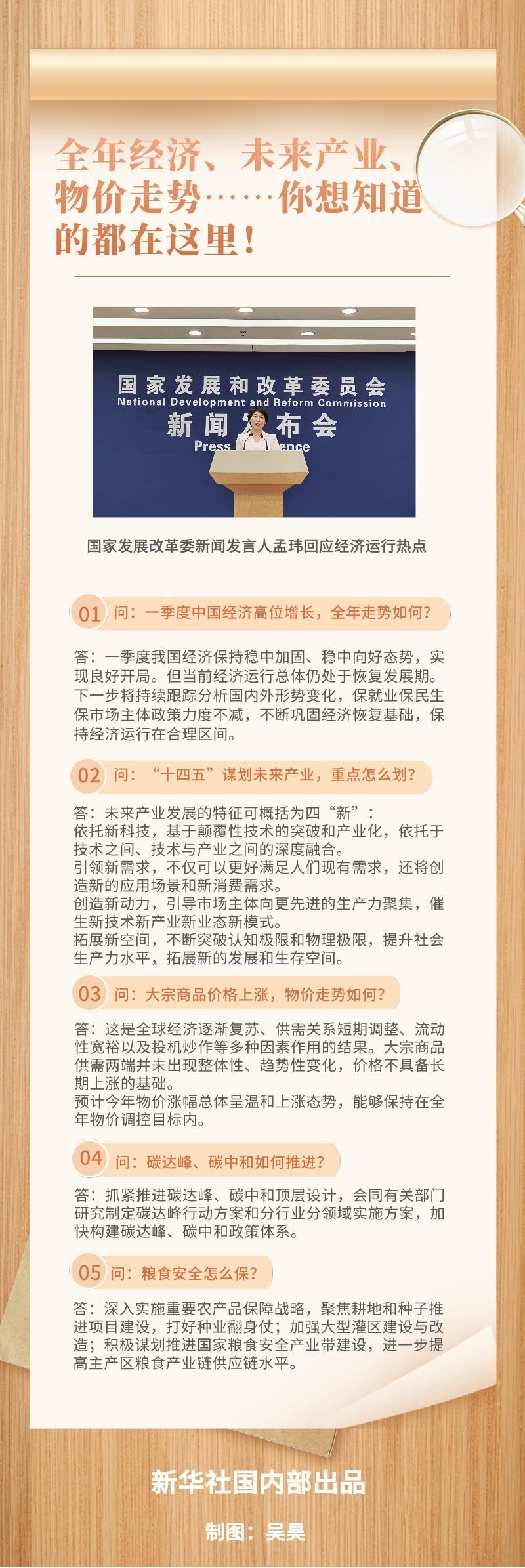 一季度中國經(jīng)濟高位增長,全年走勢如何?“十四五”謀劃未來產(chǎn)業(yè),重點怎么劃?大宗商品價格上漲,物價可控嗎?國家發(fā)展改革委新聞發(fā)言人孟瑋在19日舉行的新聞發(fā)布會上就熱點問題作出回應(yīng)。