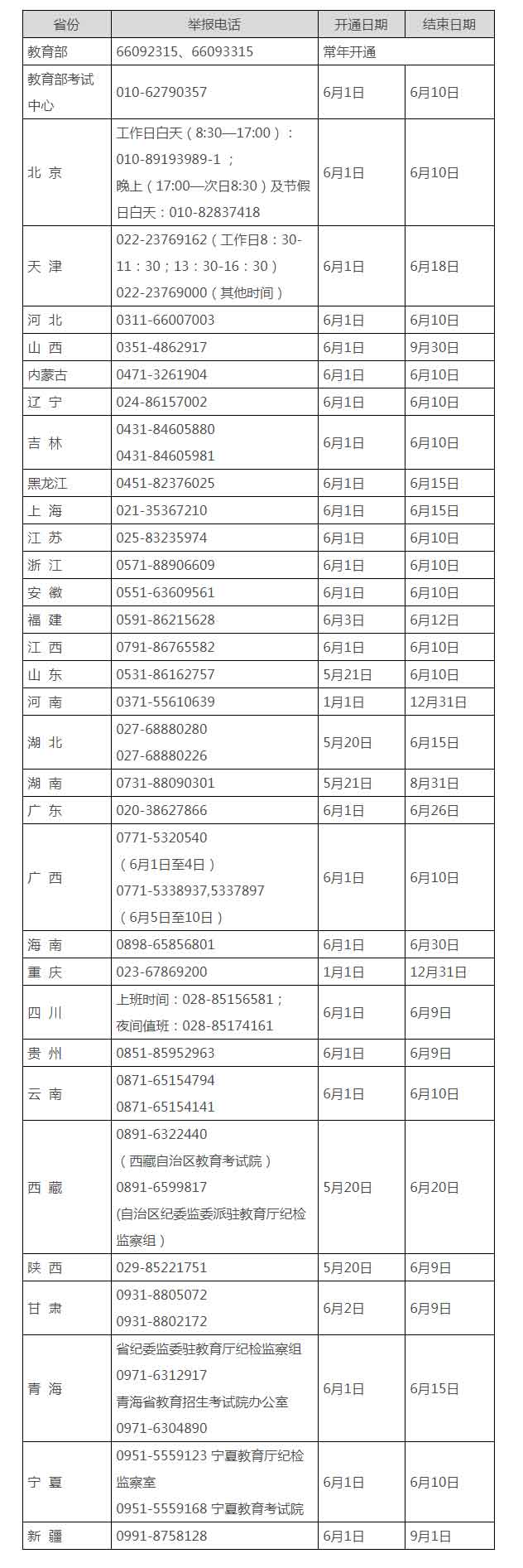 近日,教育部統(tǒng)一公布了教育部以及全國31個(gè)?。▍^(qū)、市)教育行政部門和招生考試機(jī)構(gòu)2021年的高考舉報(bào)電話,歡迎廣大考生、家長及社會(huì)各界人士及時(shí)舉報(bào)反映涉及2021年高考的問題線索。教育部及各省(區(qū)、市)將會(huì)同有關(guān)部門根據(jù)舉報(bào)線索第一時(shí)間核查處理,堅(jiān)決維護(hù)高考公平公正。