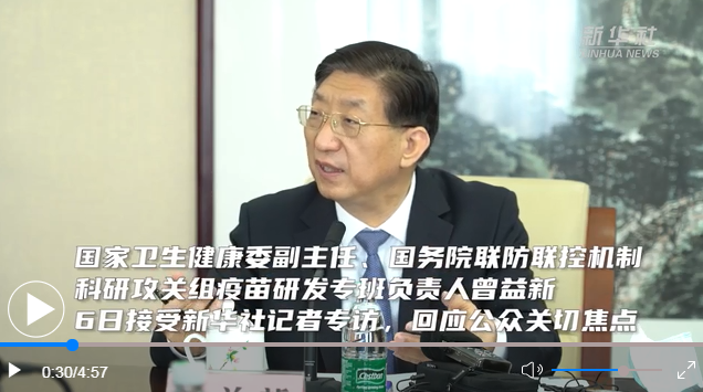 我國(guó)新冠疫苗研發(fā)總體進(jìn)展如何?開展了哪些方面的國(guó)際合作?疫苗在真實(shí)世界的研究結(jié)果怎樣?下一步還會(huì)有新型疫苗問世嗎?……6日,國(guó)家衛(wèi)生健康委副主任、國(guó)務(wù)院聯(lián)防聯(lián)控機(jī)制科研攻關(guān)組疫苗研發(fā)專班負(fù)責(zé)人曾益新接受新華社記者專訪,回應(yīng)公眾關(guān)切焦點(diǎn)。