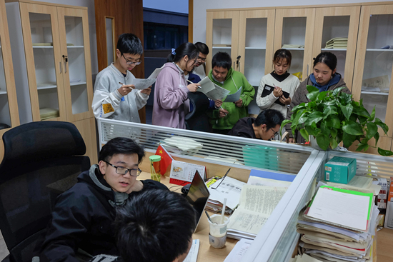 4月7日,晚自習(xí)時(shí),學(xué)生們擠在辦公室里找老師問問題。