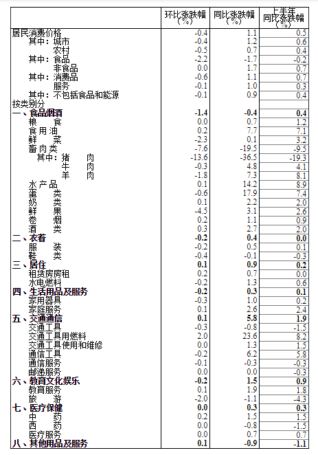 一、各類商品及服務(wù)價(jià)格同比變動(dòng)情況