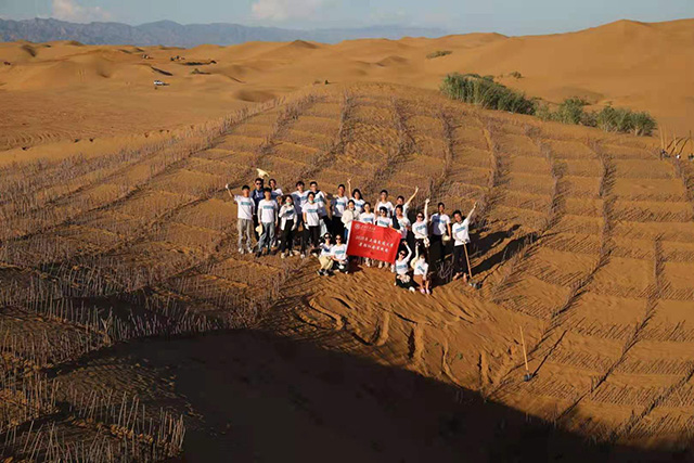 了解到這些后,他和同學(xué)立刻決定加入到這項(xiàng)工作當(dāng)中,十個(gè)人一道,坐了一天一夜的綠皮火車(chē),又經(jīng)過(guò)6小時(shí)的汽車(chē)顛簸,來(lái)到了大漠深處,通過(guò)制作麥草方格治理荒漠,沒(méi)想到這一去,在之后的每年夏天,他們還帶領(lǐng)了更多的志愿者來(lái)到這個(gè)地方。他們都有一個(gè)共同的信念——“直到風(fēng)沙止步”。