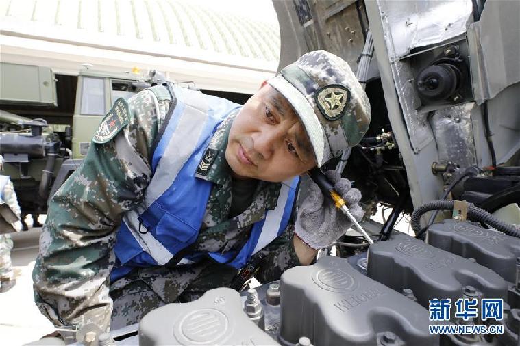 聯(lián)勤保障部隊某團(tuán)修理技師張俊凱在檢修車輛(2019年6月5日攝)。 新華社發(fā)(曾曾 攝)