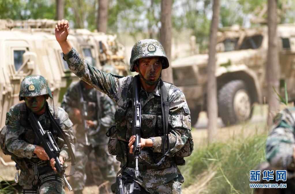 陸軍第76集團軍某特戰(zhàn)旅特戰(zhàn)營營長劉近帶領特戰(zhàn)小隊進行突擊清剿行動(7月14日攝)。新華社記者張永進攝