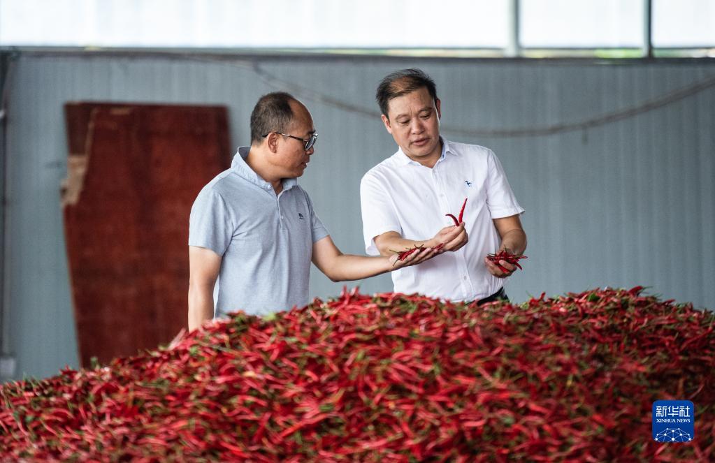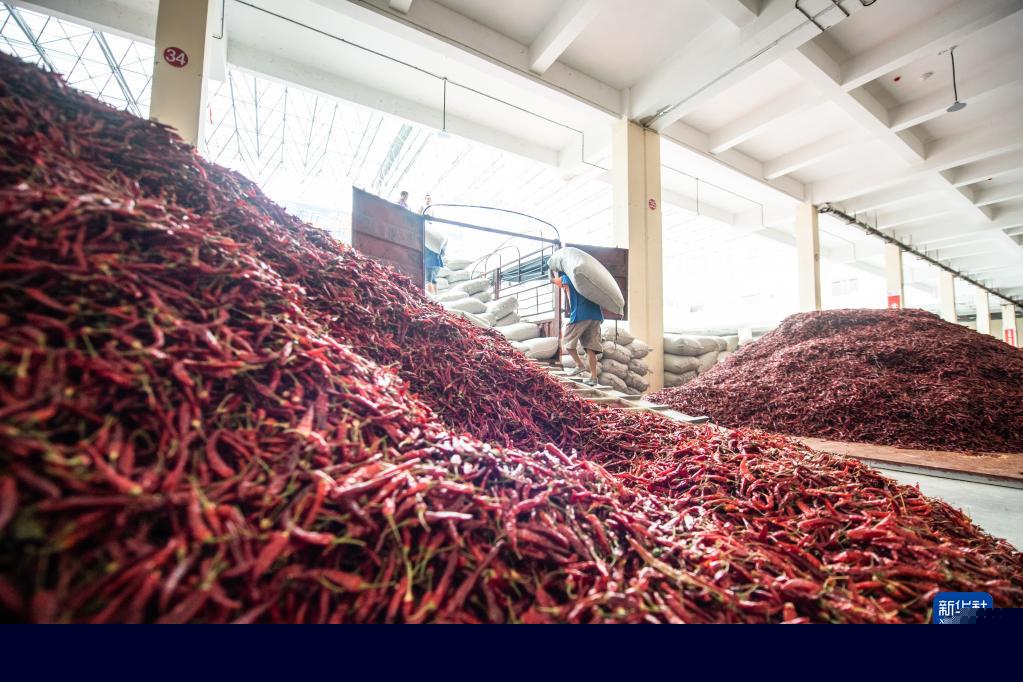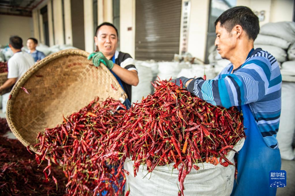 經(jīng)銷商在遵義市新蒲新區(qū)中國(guó)辣椒城挑選辣椒(2020年8月18日攝)。新華社記者 陶亮 攝