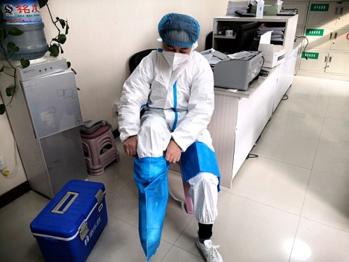 今年11月1日,咸陽市城投醫(yī)療集團二棉醫(yī)院的王敏娟也接到了為居家隔離者上門進行核酸采樣的任務(wù)。當天早上8點出發(fā),一直工作到中午一點半,就在剩下兩三戶的時候,她感覺到不舒服,頭暈難受,當時想著再堅持一會兒,等完成所有任務(wù)再吃飯休息。另外,也實在舍不得再浪費一套防護服。