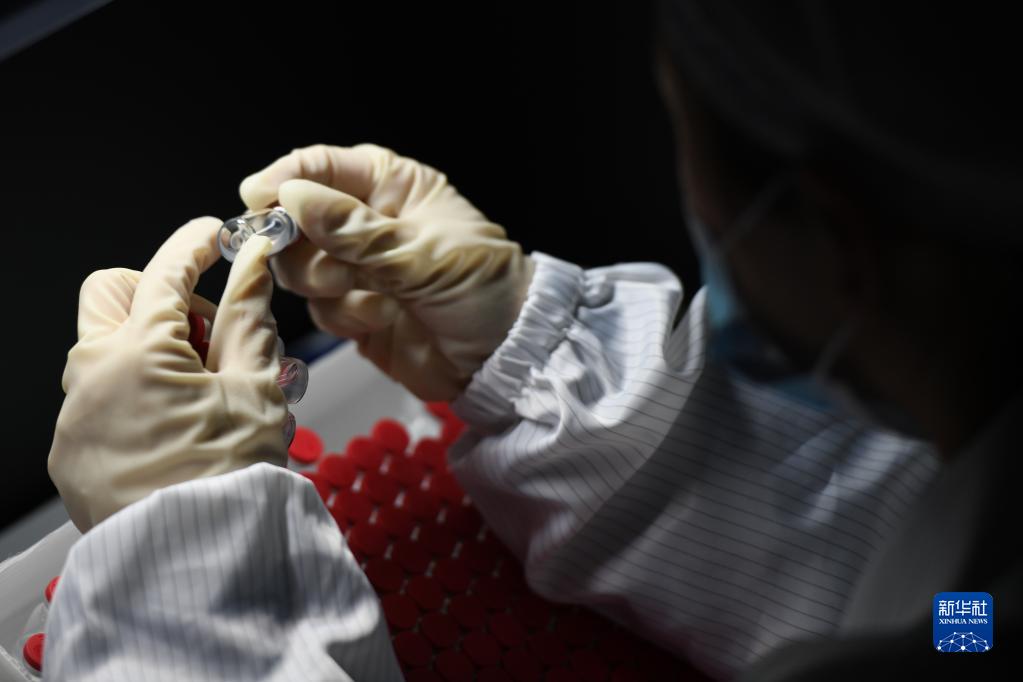工作人員在國(guó)藥集團(tuán)中國(guó)生物北京生物制品研究所的新冠病毒滅活疫苗分包裝車(chē)間內(nèi)工作(2020年12月25日攝)。新華社記者 張玉薇 攝
