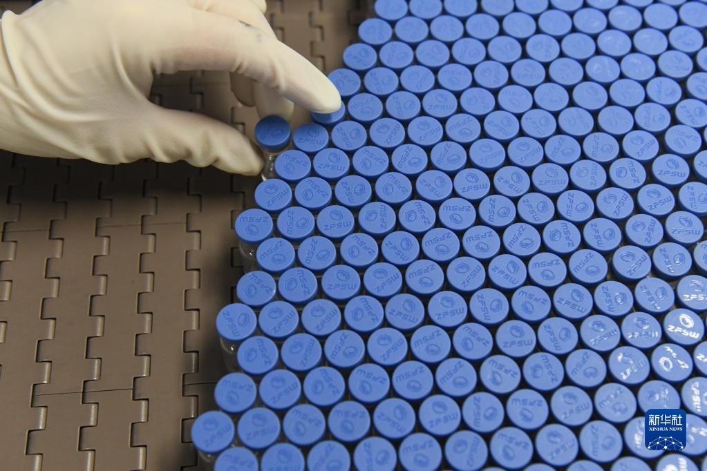 在安徽智飛龍科馬生物制藥有限公司新冠疫苗生產(chǎn)線(xiàn)上,工作人員對(duì)疫苗進(jìn)行人工檢測(cè)(5月20日攝)。新華社記者 黃博涵 攝