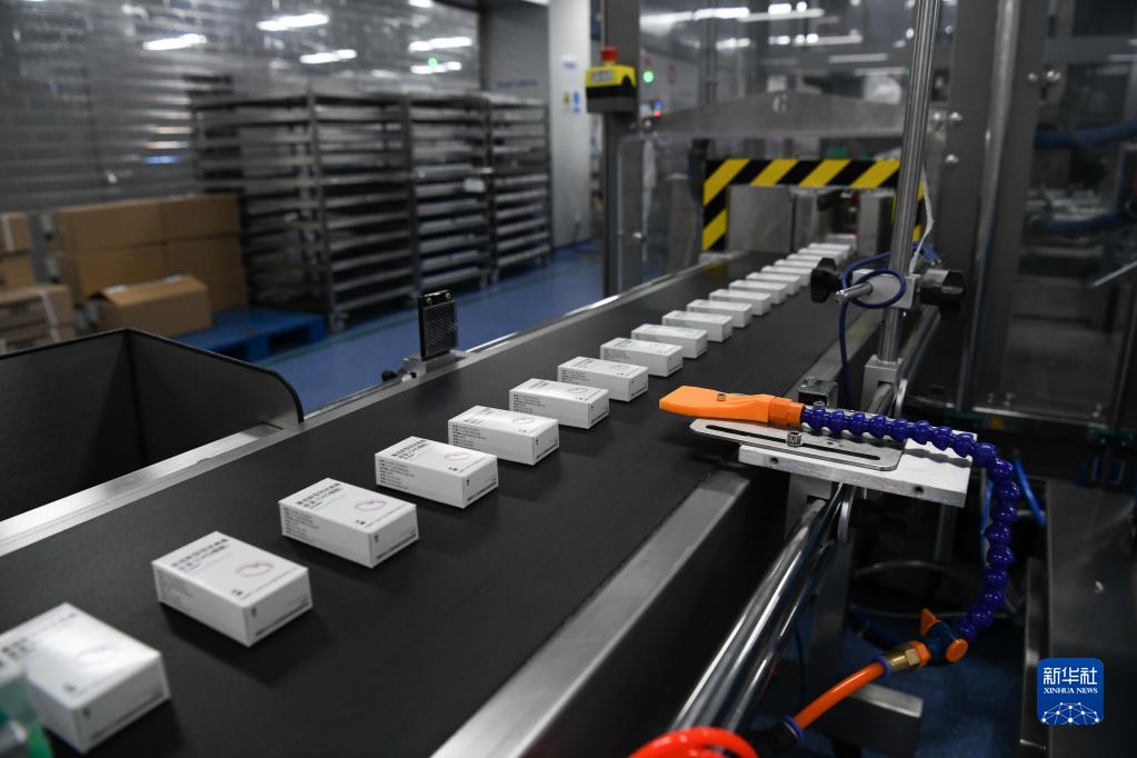 在安徽智飛龍科馬生物制藥有限公司新冠疫苗生產(chǎn)線(xiàn)上,工作人員對(duì)疫苗進(jìn)行包裝(5月20日攝)。新華社記者 黃博涵 攝