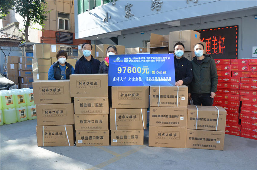 12月15日、20日,陜西光大藥業(yè)集團(tuán)股份有限公司向陜西省商貿(mào)學(xué)校、西安市雁塔區(qū)小寨路街道辦事處捐贈(zèng)價(jià)值10余萬(wàn)元的防護(hù)口罩、消毒液等防疫物資。