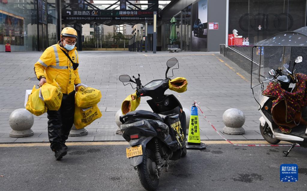 12月26日,配送員準備領(lǐng)取需要配送的貨物。新華社記者 陶明 攝