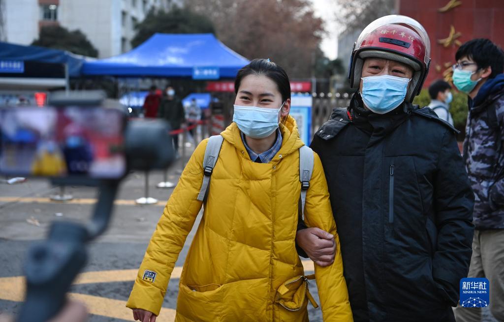 12月26日,一名男子迎接走出研究生招生考試考場的女兒。新華社記者 陶明 攝