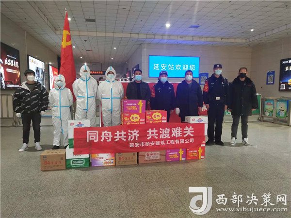 下午16時,延安市碩安建筑工程有限公司一行三人攜帶方便面、火腿腸、面包、飲料等慰問品來到延安火車站,向正在執(zhí)勤的民警、輔警表示感謝,同時提醒民警、輔警及防疫人員做好自身防護(hù)。企業(yè)負(fù)責(zé)人表示:延安鐵警舍小家、為大家,守護(hù)群眾的平安健康,這些防疫物資代表著我們對民、輔警及所有防疫工作人員的關(guān)心和敬意!