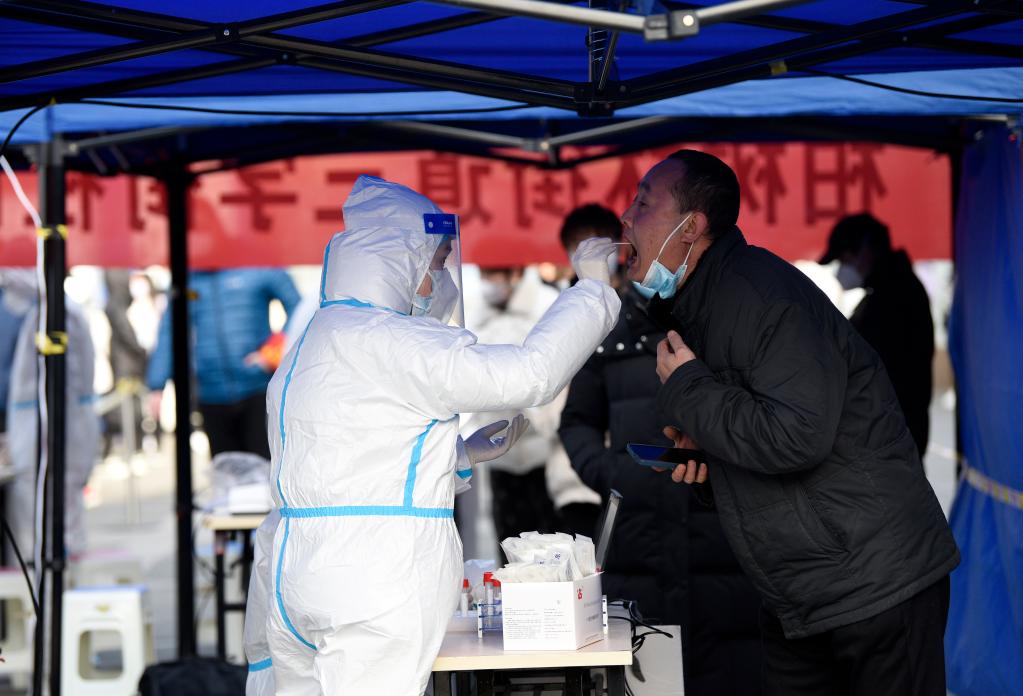 12月17日,市民在西安市碑林區(qū)柏樹林街道三學(xué)街社區(qū)核酸檢測點進行核酸檢測。新華社記者 劉瀟 攝